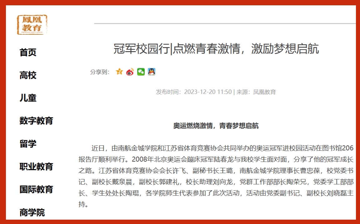 【凤凰教育】冠军校园行|点燃青春激情,激励梦想启航