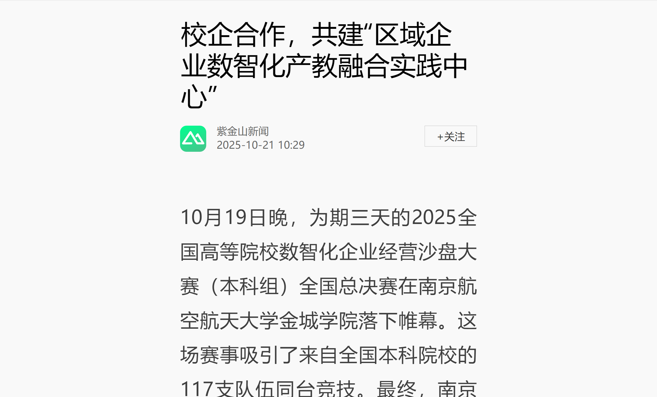 【紫金山】校企合作,共建“区域企业数智化产教融合实践中心”