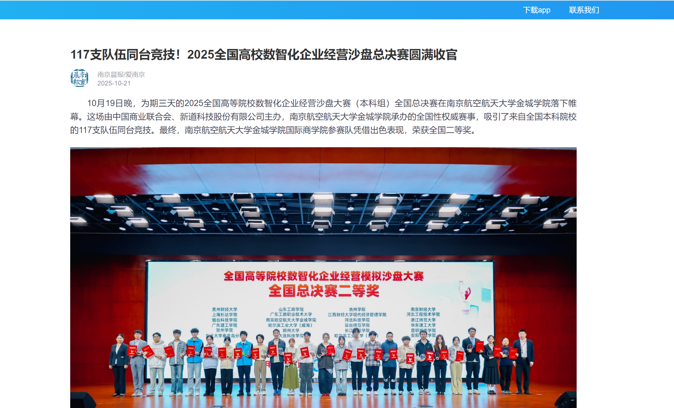【南京晨报】117支队伍同台竞技!2025全国高校数智化企业经营沙盘总决赛圆满收官