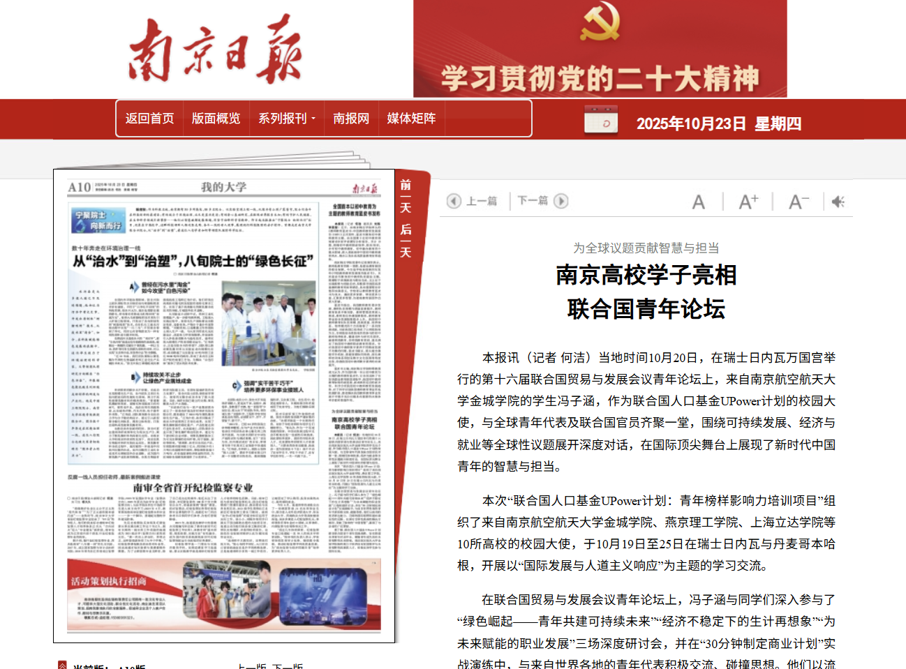 【南京日报】南京高校学子亮相 联合国青年论坛