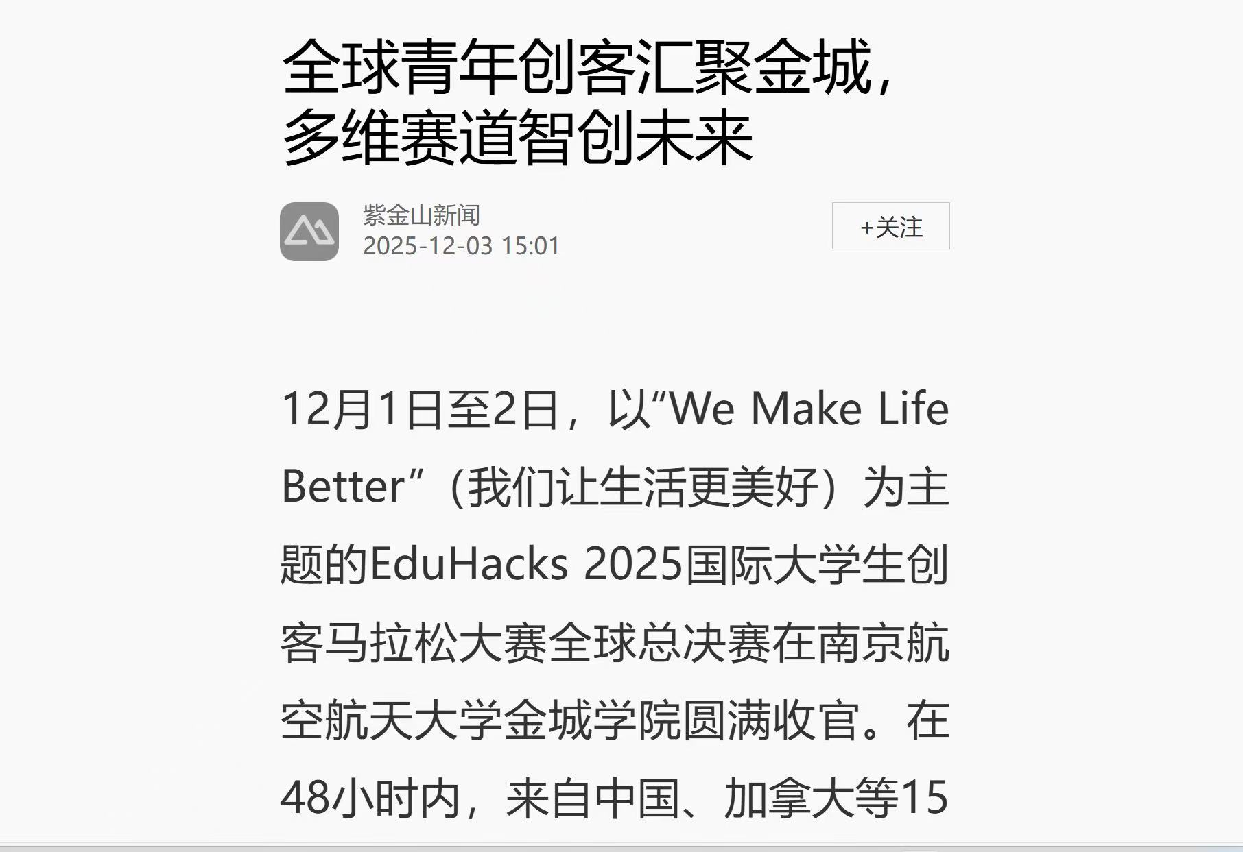 【紫金山】EduHacks 2025圆满收官 |全球青年创客精英汇聚金城,多维赛道智创未来