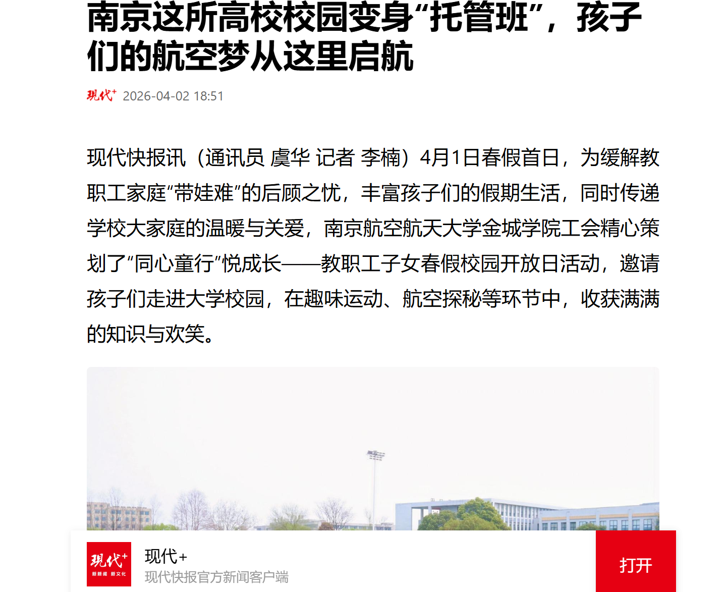 【现代快报】南京这所高校校园变身“托管班”,孩子们的航空梦从这里启航