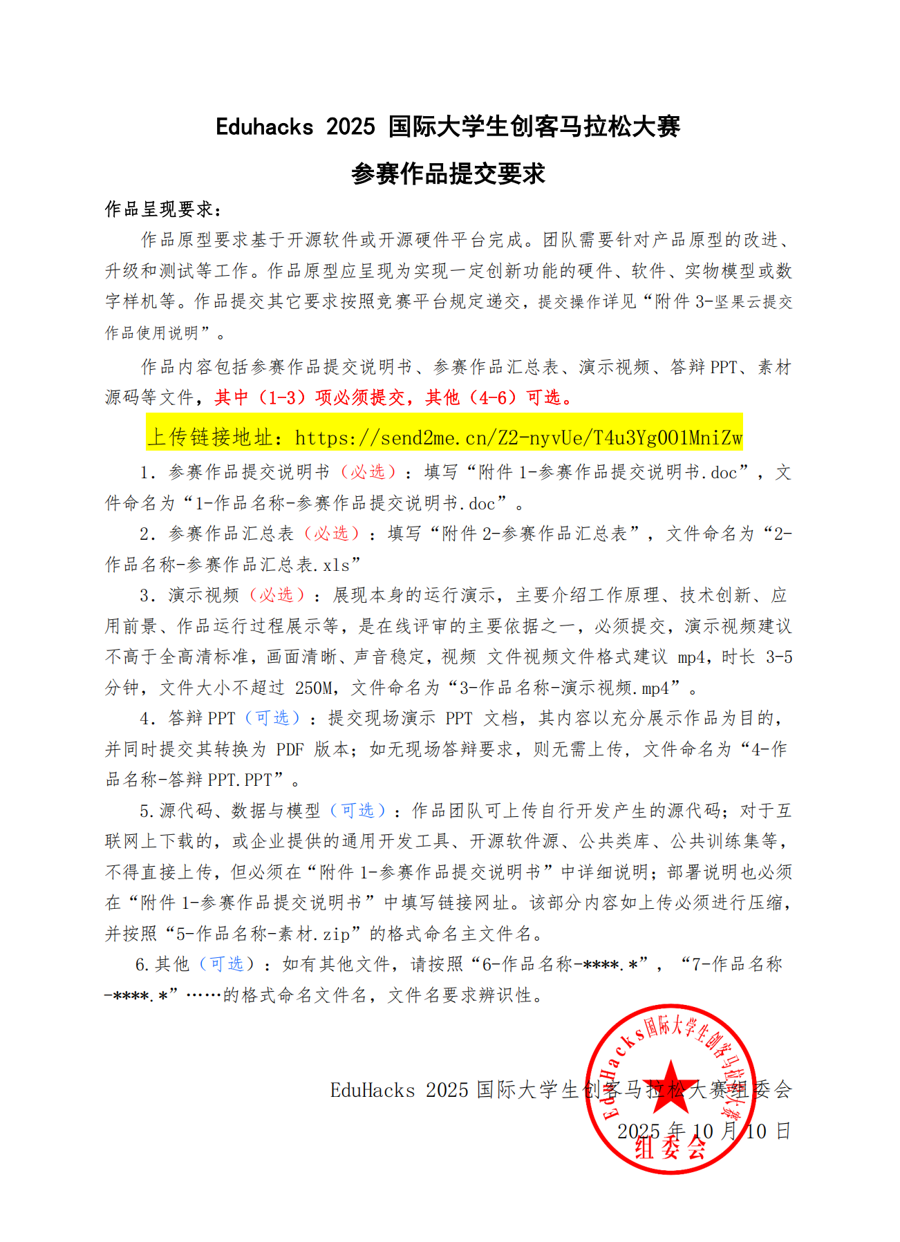 Eduhacks 2025 国际大学生创客马拉松大赛参赛作品提交要求