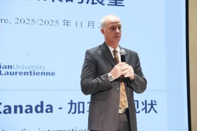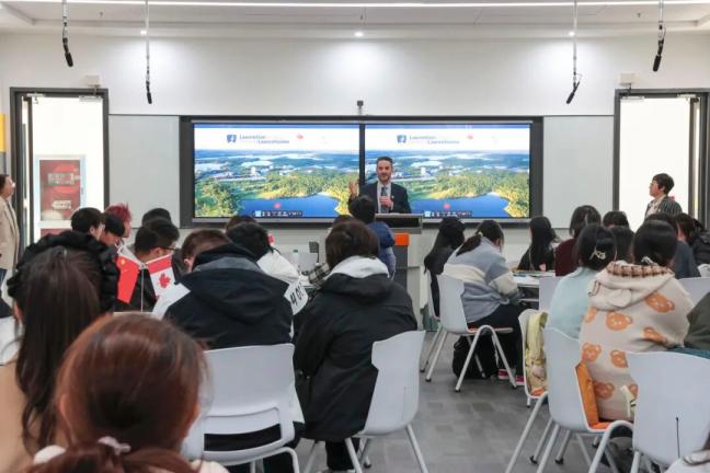 Alain Simard在智慧教室T-N205与同学们进行了面对面交流。他简要介绍了劳伦森大学的概况,特别是劳伦森大学在双语教学、小班化课堂以及对接安大略省优势产业方面的独特魅力。在互动环节,同学们踊跃发言,就留学申请流程、优势专业特色、校园文化生活以及国际学生支持服务等关心的话题进行提问,Alain Simard一一给予细致解答。现场气氛热烈,此次交流为两校未来深化合作、助力学生国际化成长奠定了良好基础。