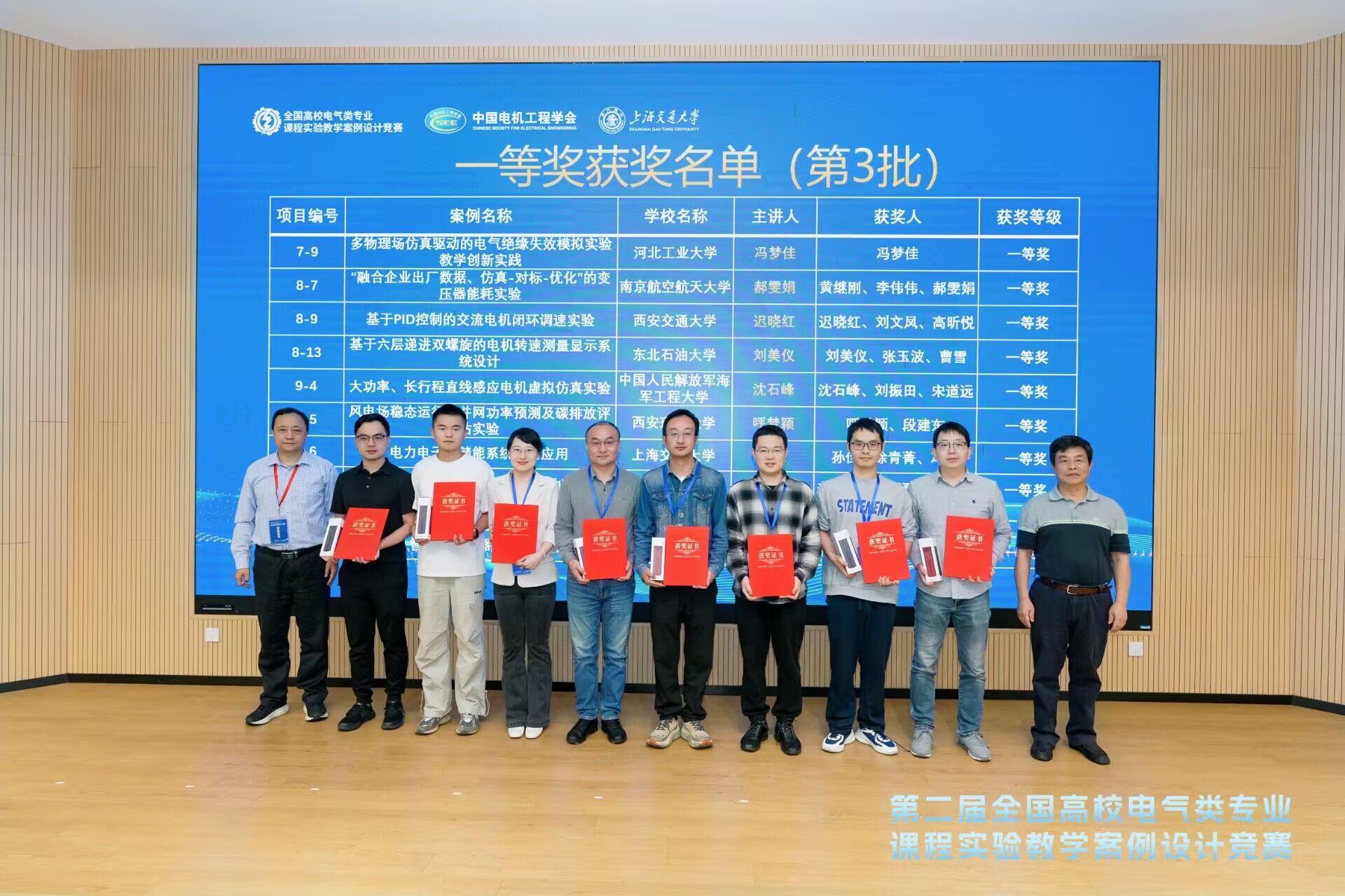 2025年10月17日至19日,由教育部高等学校电气类专业教学指导委员会、中国电机工程学会和国家级实验教学示范中心联席会电子学科组联合主办的第二届全国高校电气类专业课程实验教学案例设计竞赛在上海交通大学隆重举行。南京航空航天大学金城学院绿智制造产业学院教师郝雯娟、黄继刚、李伟伟教师团队,凭借《“融合企业出厂数据、仿真-对标-优化”的变压器能耗实验》项目,从全国144支参赛队伍中脱颖而出,荣获一等奖。