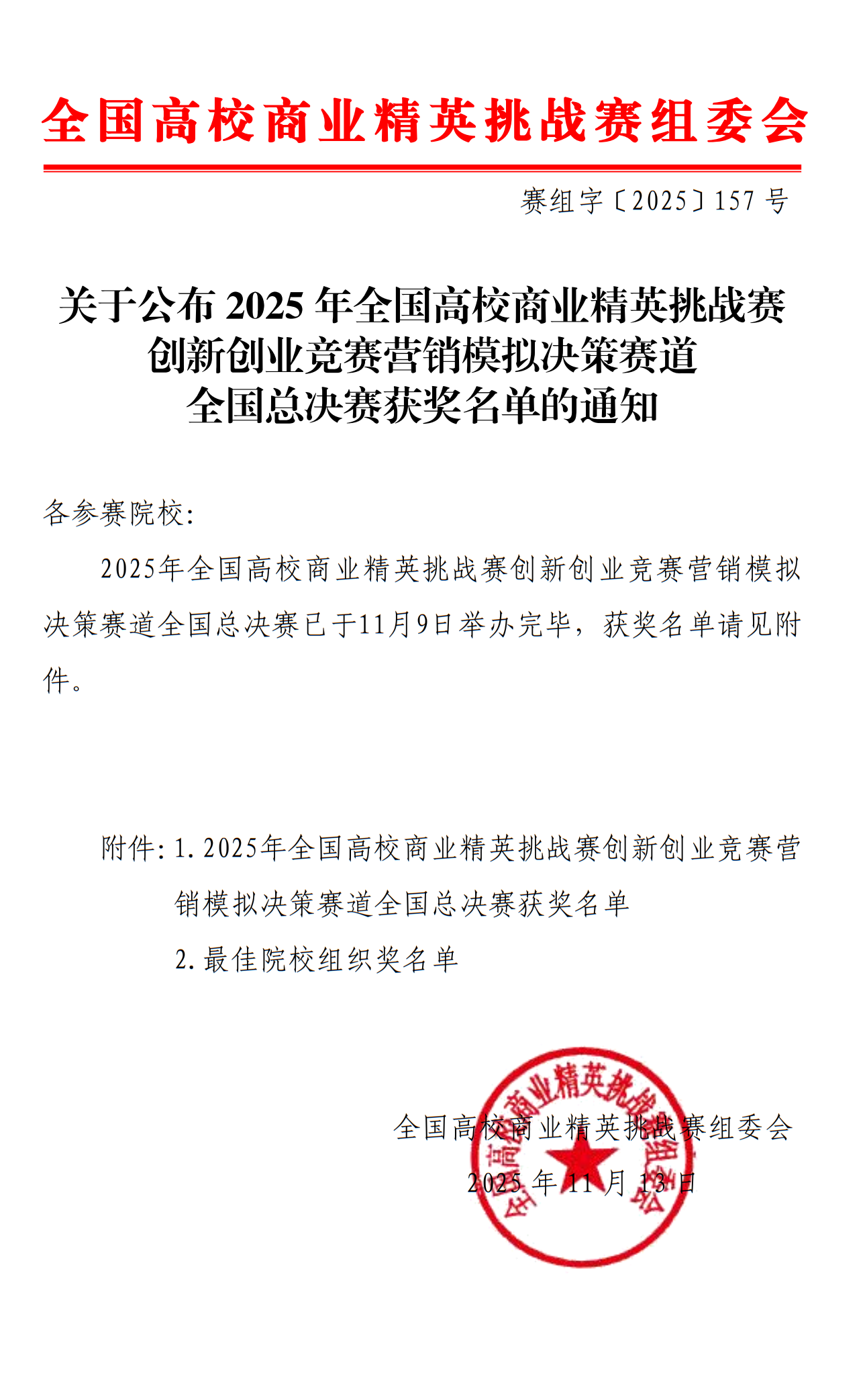 我院学子在 2025 年全国高校商业精英挑战赛营销模拟决策赛道全国总决赛中斩获佳绩!