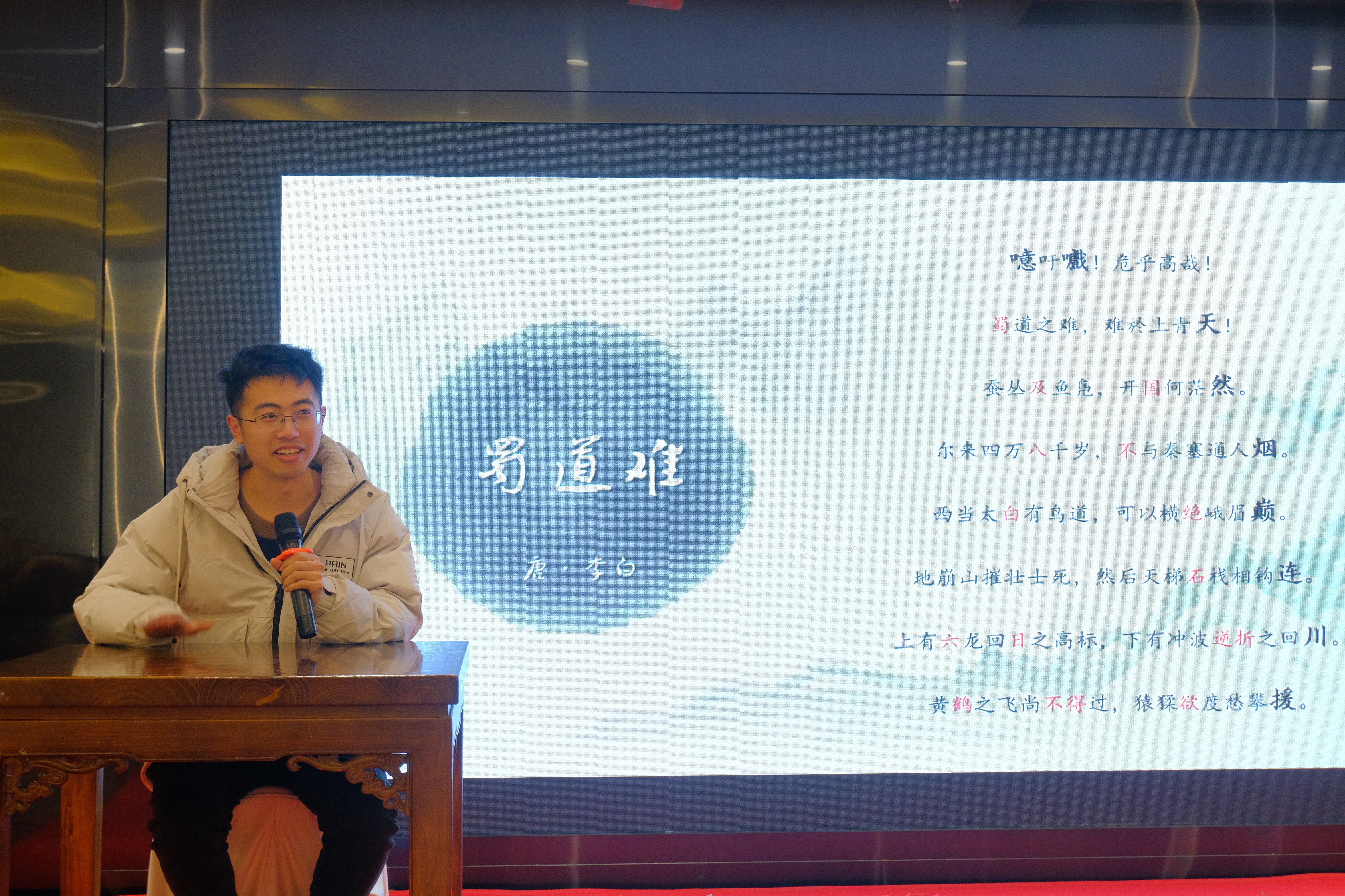 随着各专业教研组依次登场,晚会进入“相聚机自,匠心铿锵”的深厚篇章。电气教研组一曲《万水千山总是情》,唱响了并肩作战、风雨同舟的同行情谊;机器人教研组周兴老师以《天地龙鳞》激昂开嗓,抒发了机自人投身科技强国事业的壮志豪情;机械教研组李学良老师铿锵吟诵《蜀道难》,恰如其分地诠释了机自人在攻克技术难关时“虽难必克”的坚韧意志;车辆与新能源工程教研组则以温暖合唱《小美满》,传递出团队内部和谐互助、携手共进的温馨氛围。合唱《卓玛》将现场气氛推向高潮,展现了学院上下同心同德、共谋发展的坚定决心与深厚情谊。