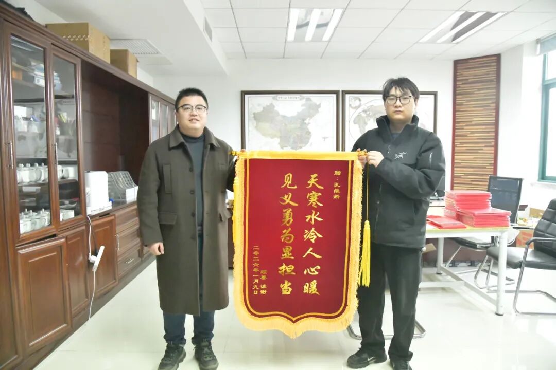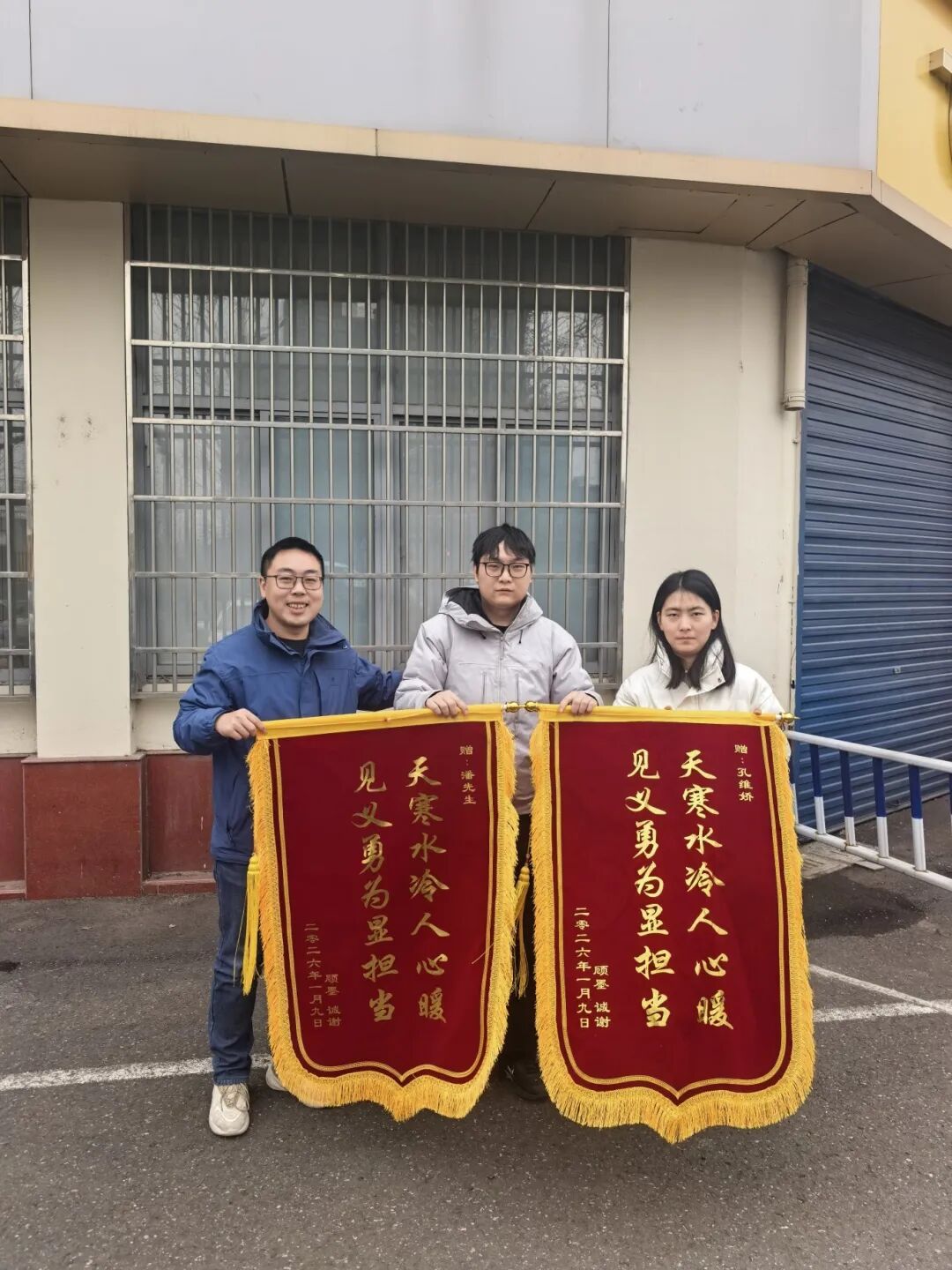 近日,常州市民顾先生专程来到南航金城学院,送来了一面写着“天寒水冷人心暖 见义勇为显担当”的鲜红的锦旗。学校这才得知,国际商学院市场营销专业的孔维娇同学在2026年1月10日寒夜的河岸边上演了“关键一拉”,挽救了鲜活的生命。