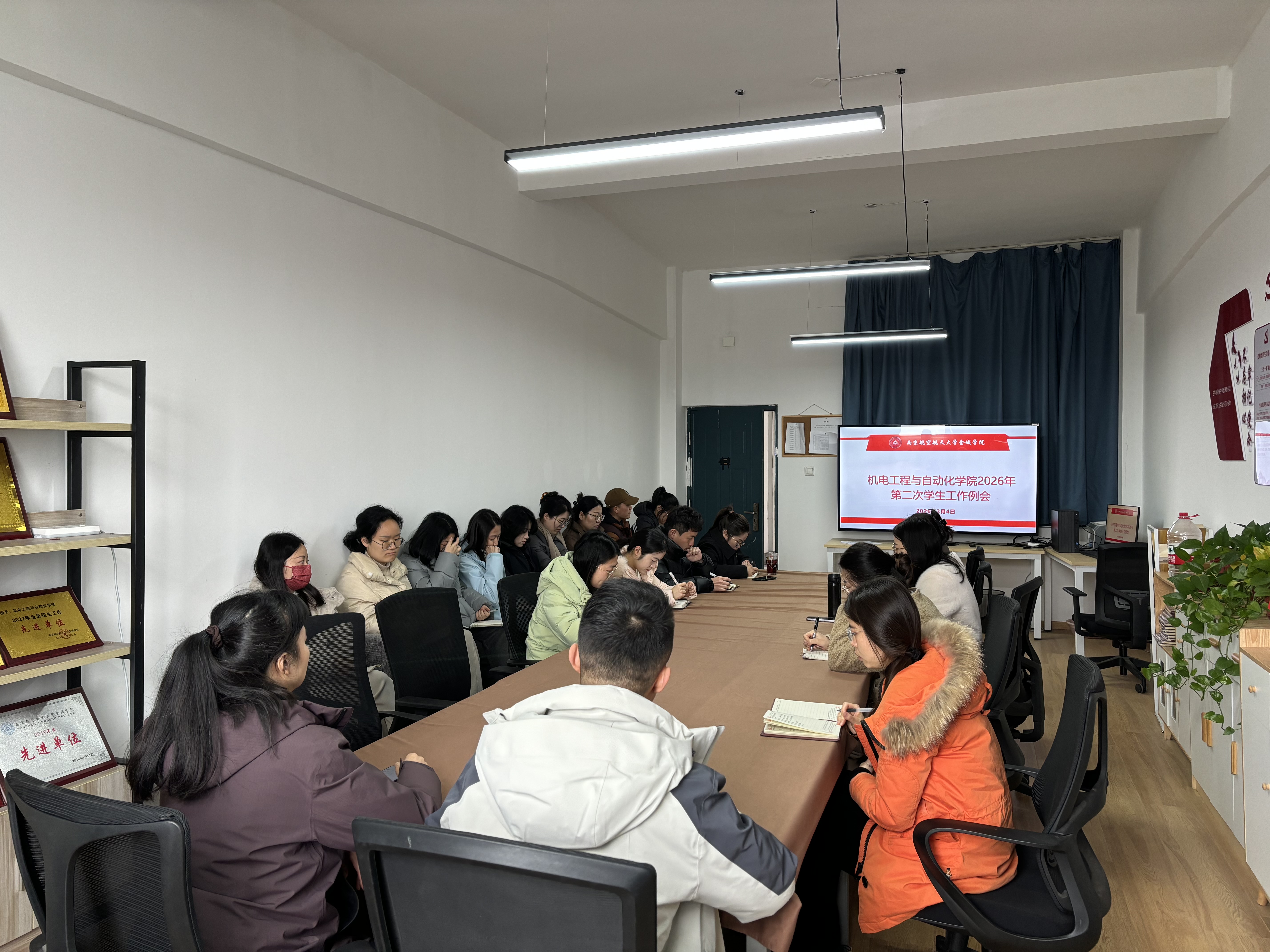2026年3月4日上午10:00,机电工程与自动化学院在A3-617召开2025-2026学年第二学期开学第一次学生工作会议。机电工程与自动化学院党总支书记田晋、党总支副书记徐超及全体辅导员出席此次会议。