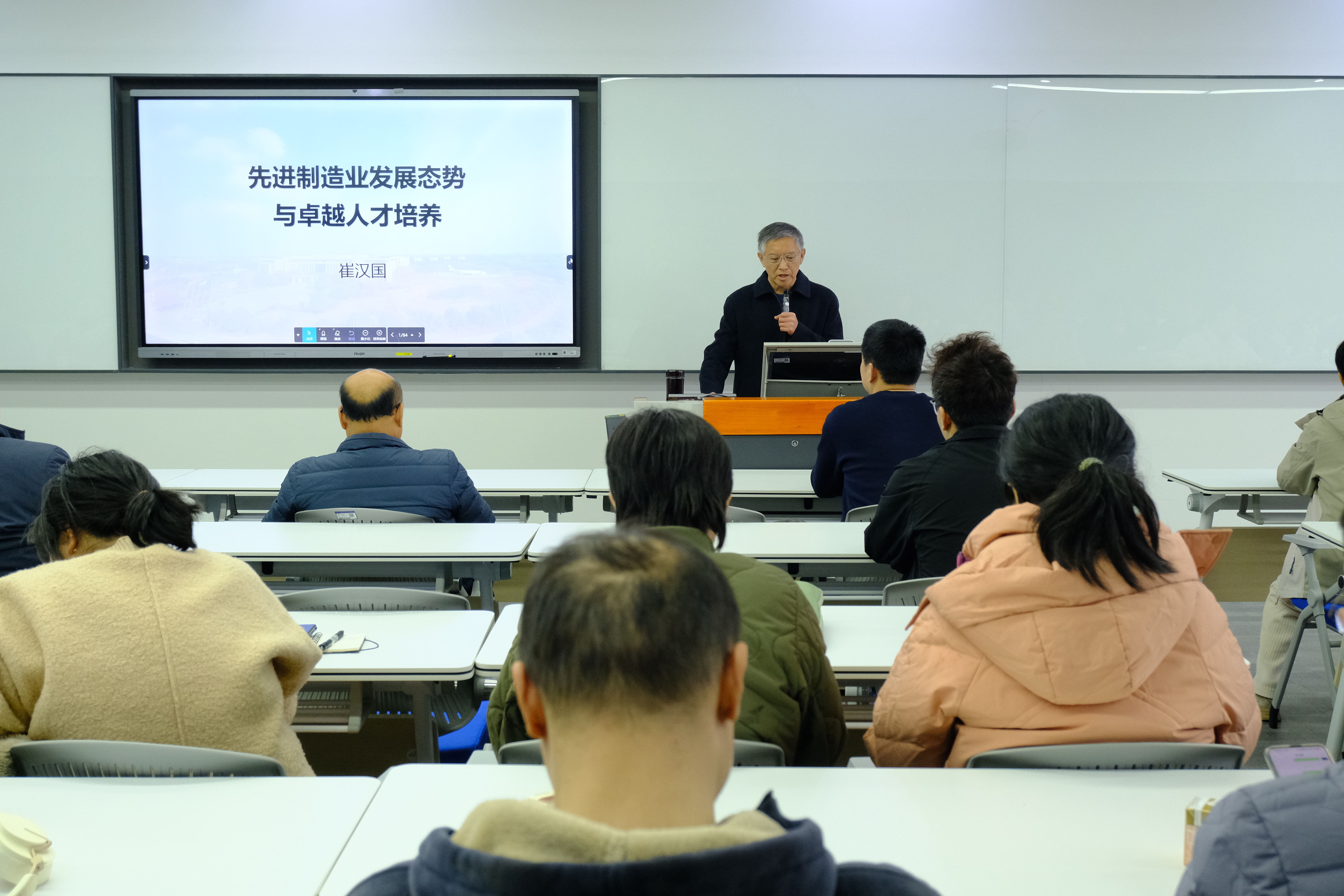 为精准把握先进制造业发展脉搏,破解卓越工程人才培养难题,2026年3月18日下午,南京航空航天大学金城学院绿智制造产业学院成功开展“致”雅集论坛。论坛特邀崔汉国教授专题分享,围绕“先进制造业发展态势与卓越人才培养”核心主题,与现场师生共探产业变革与人才培育的融合之路。副校长王萌、机电工程与自动化学院院长刘文波、学院党总支书记田晋、副院长黄继刚及师生代表参加本次论坛。